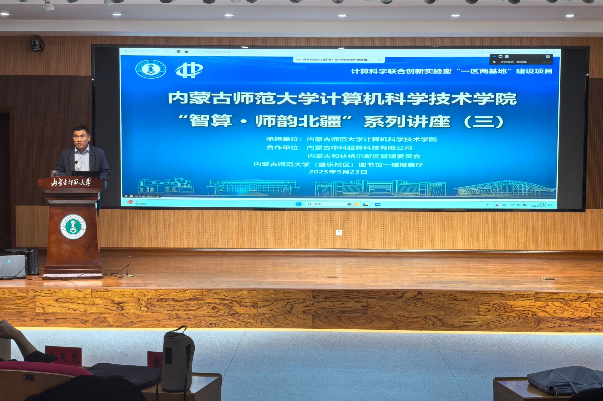 “智算·师韵北疆”系列讲座依托我校与内蒙古中科超算科技有限公司、内蒙古和林格尔新区管理委员会共建的“计算科学联合创新实验室”——“一区两基地”项目,致力于打造计算机科学领域的高水平学术交流平台。该系列讲座通过汇聚国内外顶尖学者智慧,探讨计算机学科前沿动态,助力学科建设与科研创新水平提升,为学院发展注入新动能,为内蒙古高质量发展贡献“师大智慧”。